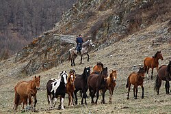 Horse breeders in Khustain Nuruu National Park (Mongolia)