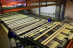 Fertigungshalle für Holzmodulbauelemente der Holzingenieurbaufirma Derix, Krefeld