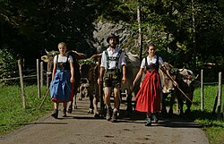 Herders at the cattle-separate in the Kleinwalsertal