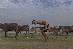 Herder with water buffalos, Rajasthan, India