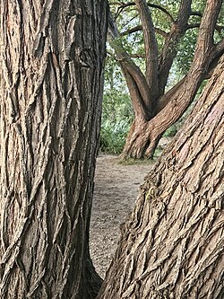 Willow trees on the bank of the river Windrush at Witney, Oxfordshire, UK |