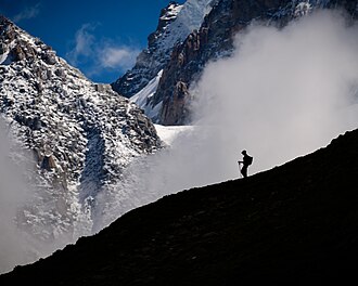 | Title | Silhouette of a female hiker in front of the Massif du Mont-Blanc |