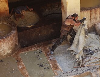 | Title | Tanners at work in one of the old tanneries of Fez, Morocco |
