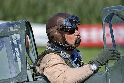Pilot with Leather Aviator Helmet |