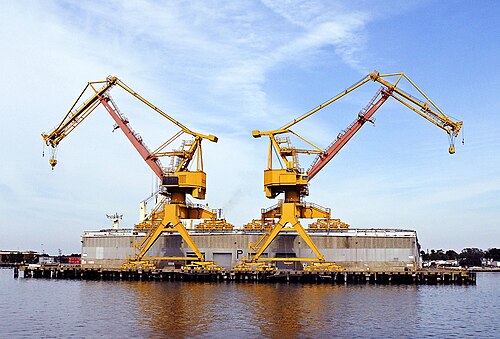 Seen on a tour of Norfolk Harbor, these massive dockside cranes will work on naval vessels. |