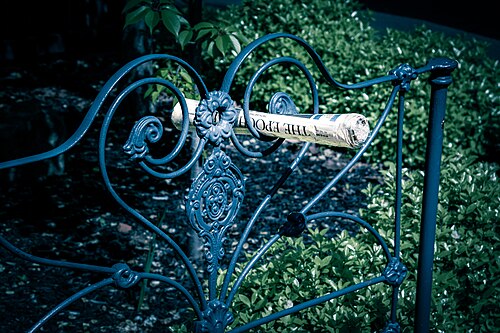 Rolled up newspaper delivered to a home in Redan, Victoria. |
