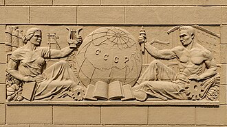 English : "Unity of humanitarian and technical sciences", Soviet time Bas-relief in Saint Petersburg
