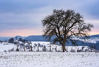 ![]() Snowy landscape around the Schmidbachtal in Beilstein, Germany, with a distinctive old pear tree. Change image |