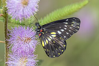 ![]() Narrow-banded dartwhite (Catasticta flisa postaurea) on Mimosa pudica, Villa Gerar, Silvania, Cundinamarca, Colombia Change image |